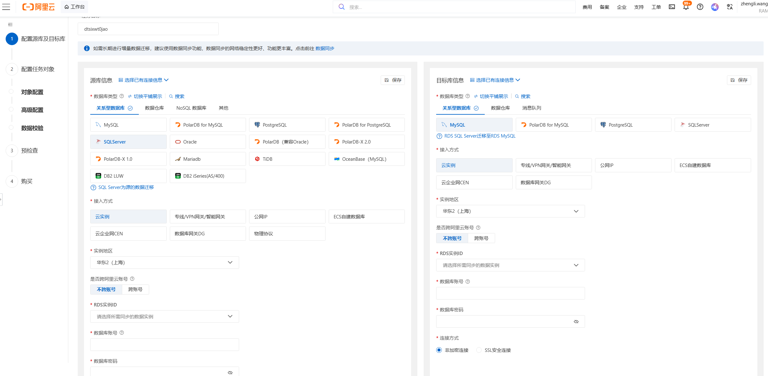 附:阿里云数据迁移,也有类似的功能,可实现跨数据库迁移。